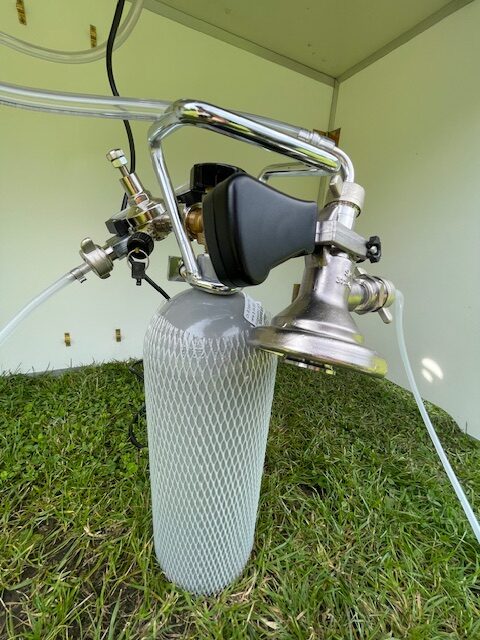 Mobile Zapfanlage mit Kohlensäureflasche (wird nach Verbrauch abgerechnet) und KEG Kopf.